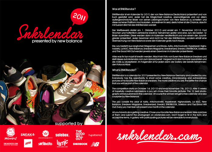 SNKRlendar.com est un projet mis en place par NEW BALANCE ALLEMAGNE, un calendrier avec nos paires de baskets ! Pour cela un concours avait été mis en place il y a quelques semaines pour récupérer les plus beaux clichés. Les dieux du stade n’ont qu’à bien se tenir !