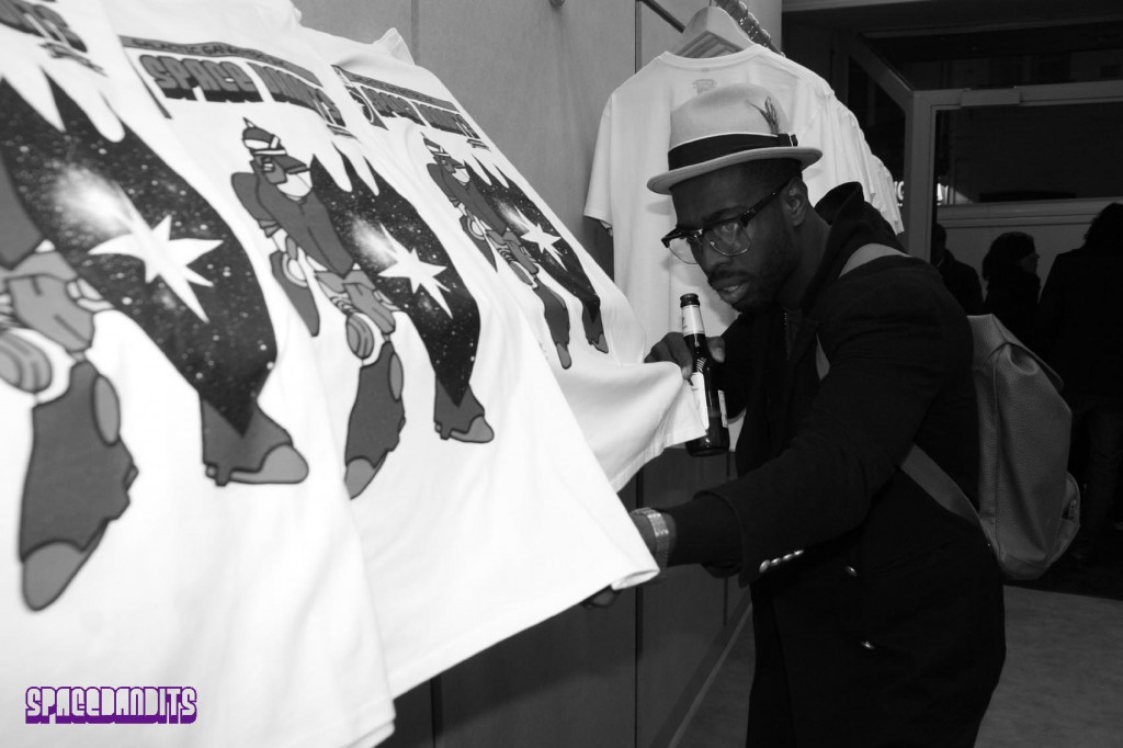 Cell et moi nous sortons actuellement une série de 3 tees sur le thème des Space Bandits. C’est une marque très graphique, orientée street-culture, et qui colle bien à mon univers. La collab s’appelle « The Space Bandits project » et est disponible depuis quelques jours.
