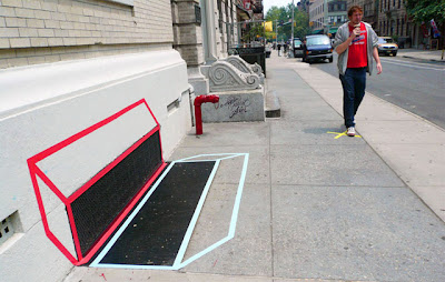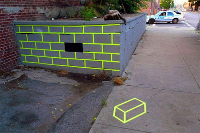 Après les bouches d’égouts déssinées, les legos sur les murs dévastés par les bombes, voilà une idée originale présentée par Aakash Nihalani, jeune artiste new yorkais, son idée est de créer des formes géométriques en dessinant leur perspective par leurs contours. Autant vous dire, assez perturbant pour l’oeil