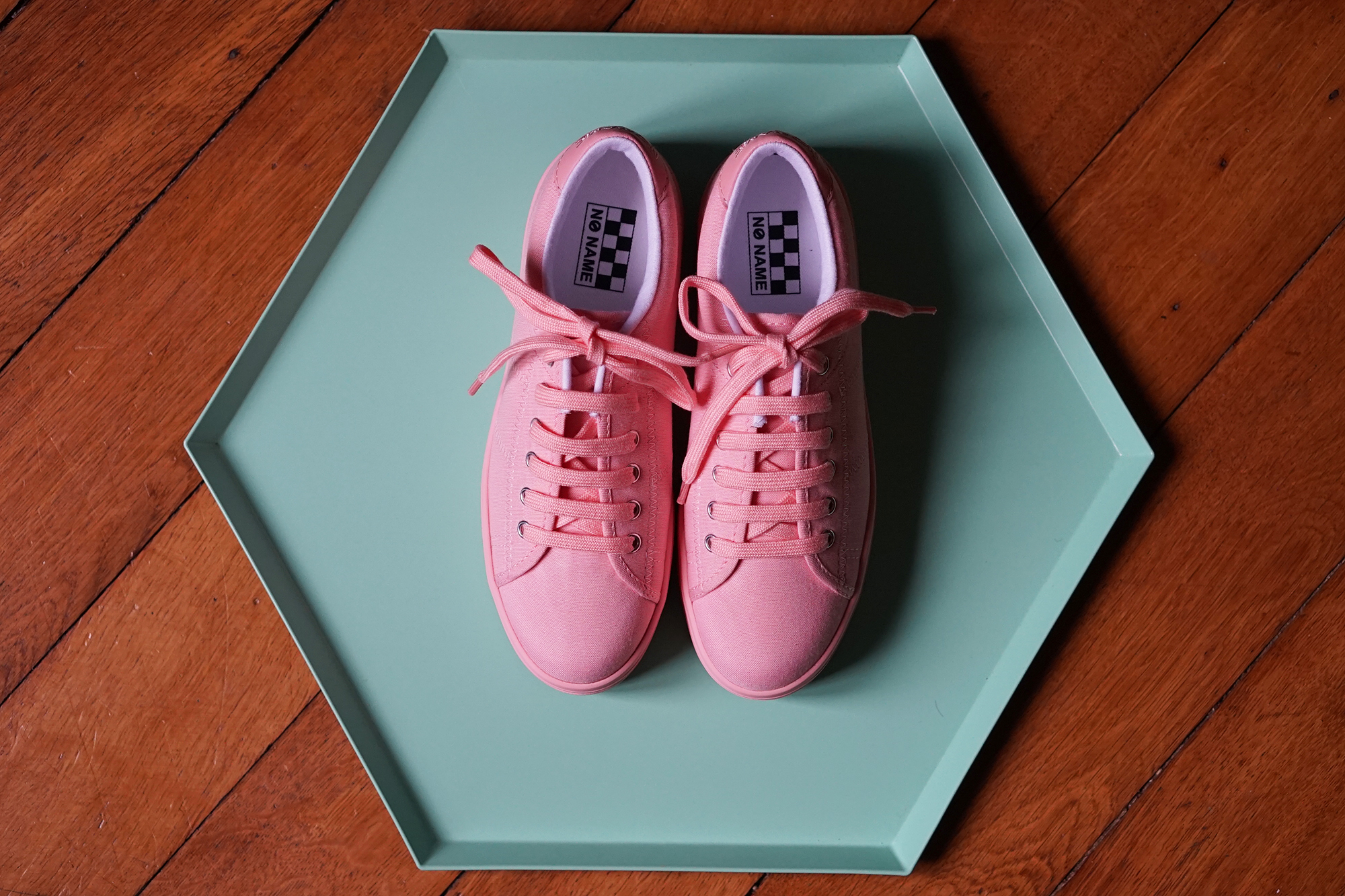 Pour accompagner le lancement du site www.onzemetrescarres.com consacré à la sneakers pour femme, No Name a accepté de collaborer avec Onze Mètres Carrés pour proposer son modèle incontournable, la Plato Sneaker décliné en deux version : des monoblocs coloris « Mint » et « Peach ». Ces modèles sont disponibles du 36 au 41 et limités à 100 exemplaires pour chaque coloris. Une paire à gagner sur instagram ce jeudi ! Stay tuned !DSC00307
